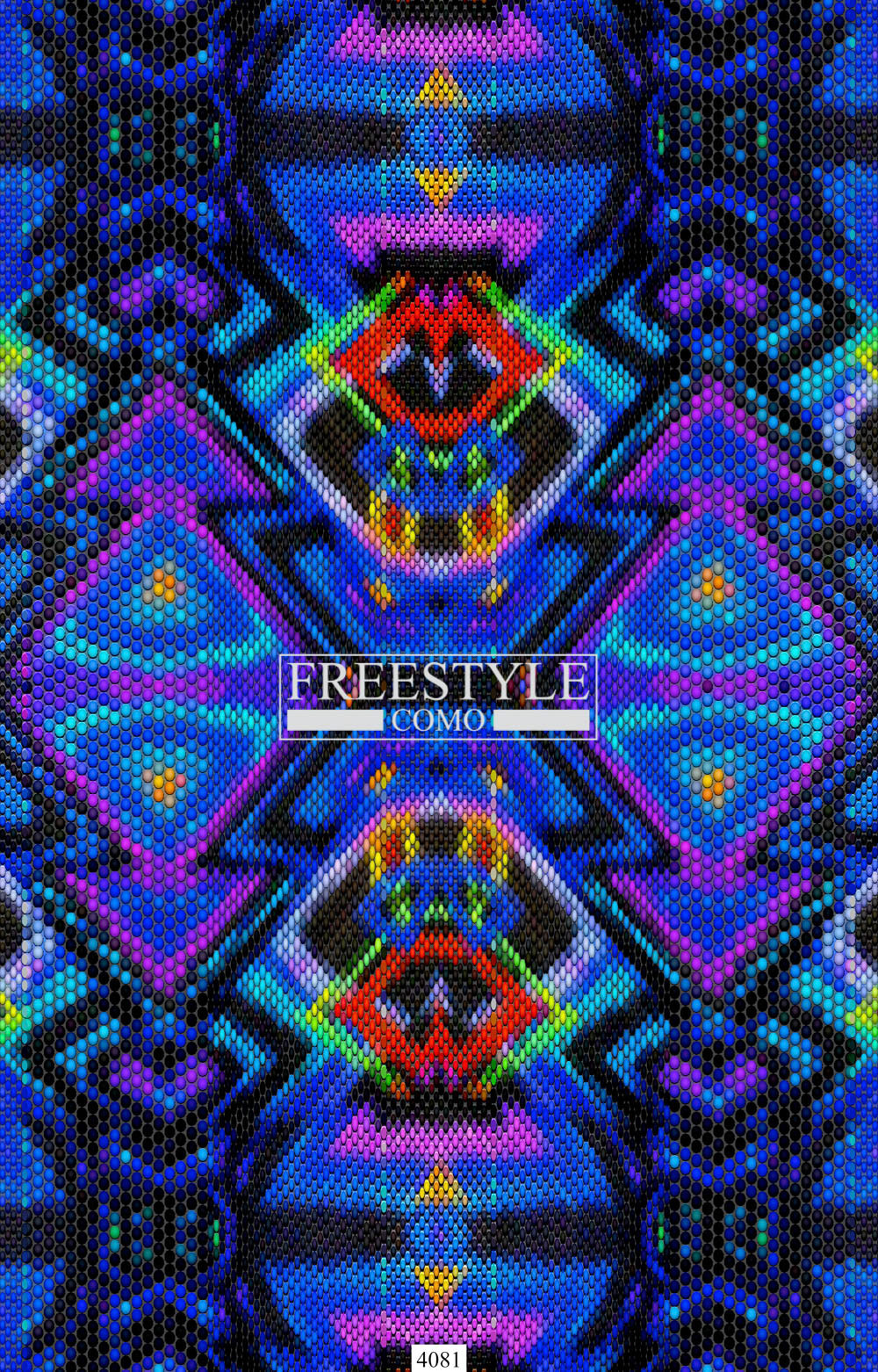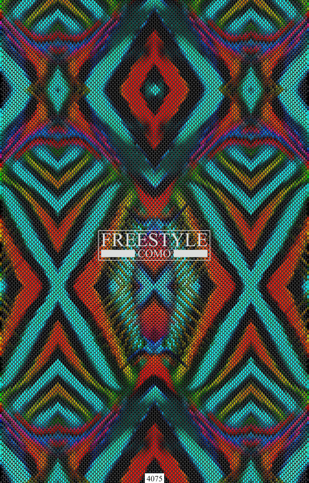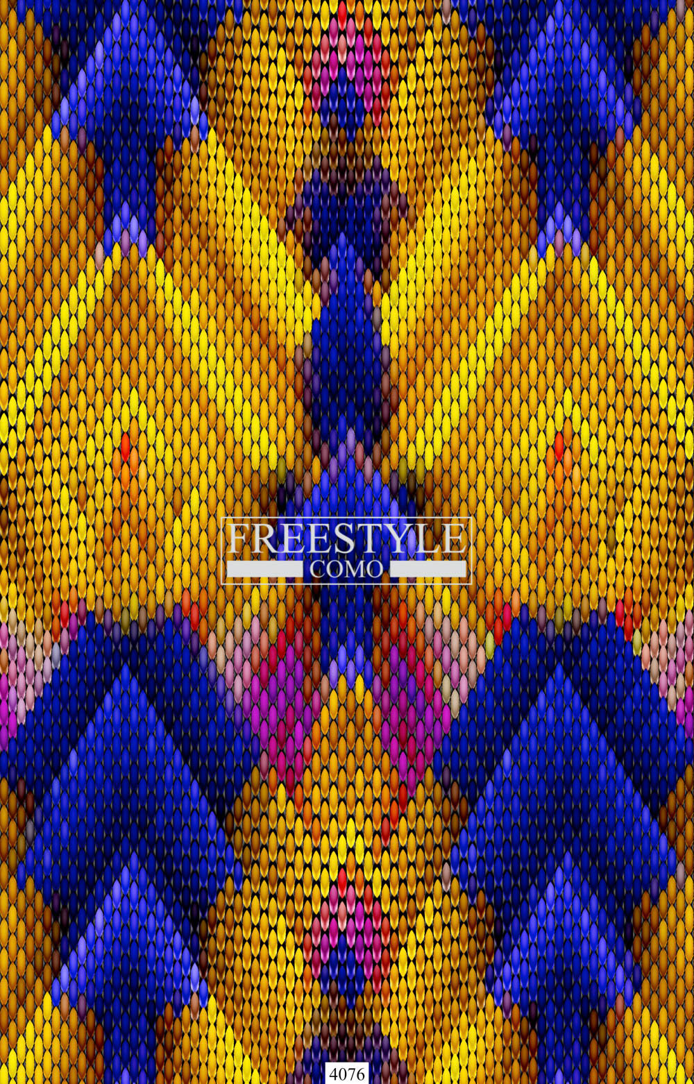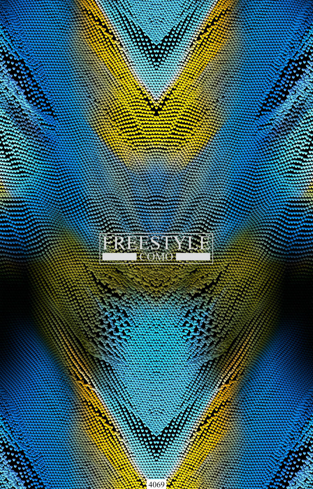 Design placed in a pattern with central mirroring that recalls the tropical fish scale, is part of a textile project inspired by the natural skins of fishes revisited in a digital key